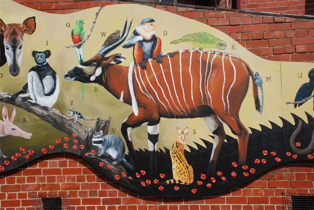 For schools, I often work as a 'mural artist-in-residence', with active participation of students in planning and execution. Clients include Lauriston Girls' School, Melbourne Museum, Malvern Central School, Bannockburn Primary School, Monash University, the National Dinosaur Museum, Camberwell Grammar School, Norwood Secondary College, Kingswood College, Burwood Heights Primary School, St. Thomas Primary School, Ivanhoe Grammar School and Malvern Primary School.